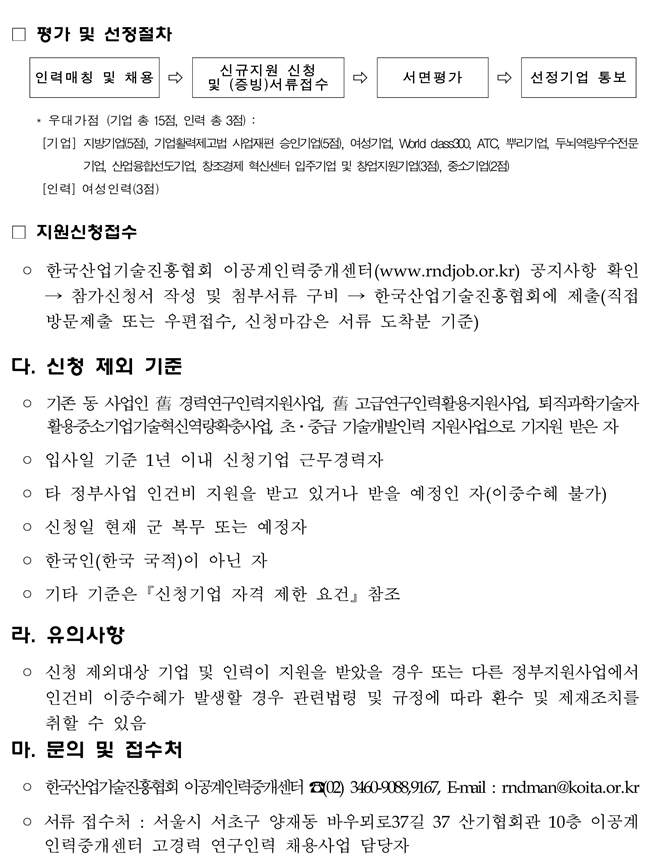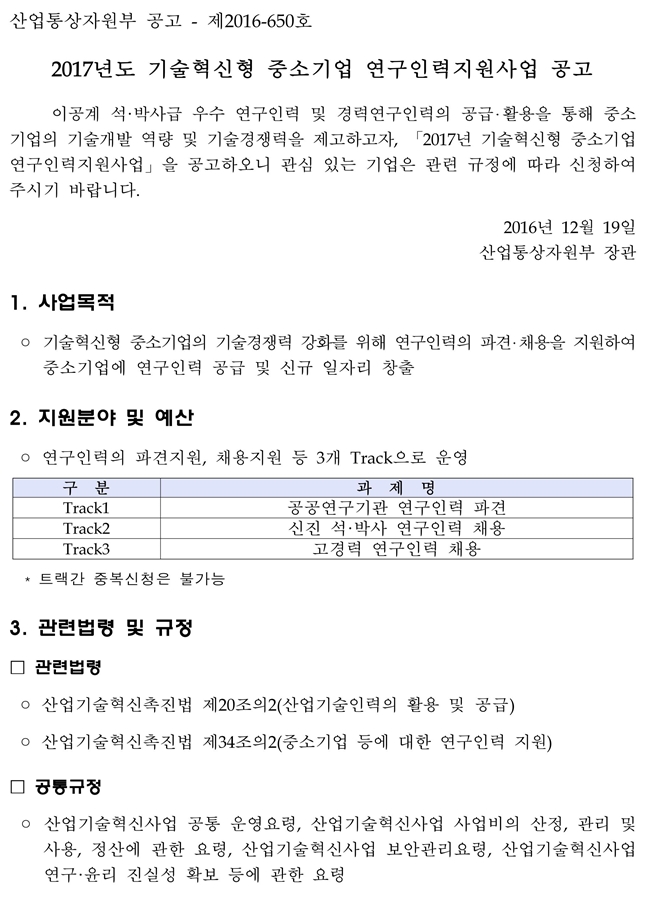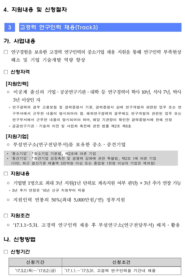 2017년 고경력 연구인력 채용지원사업 공고